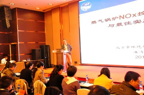 会议由北京市环保局科技处阎育梅处长做开幕致辞,然后由北京市环科院潘涛副院长首先做了《燃气锅炉氮氧化物控制技术研判准则与最佳实用技术筛选》主旨演讲,通过对各种主流技术路线多指标的比较与我国国情的分析,提出了适合北京市燃气锅炉氮氧化物控制的最佳技术路径。
